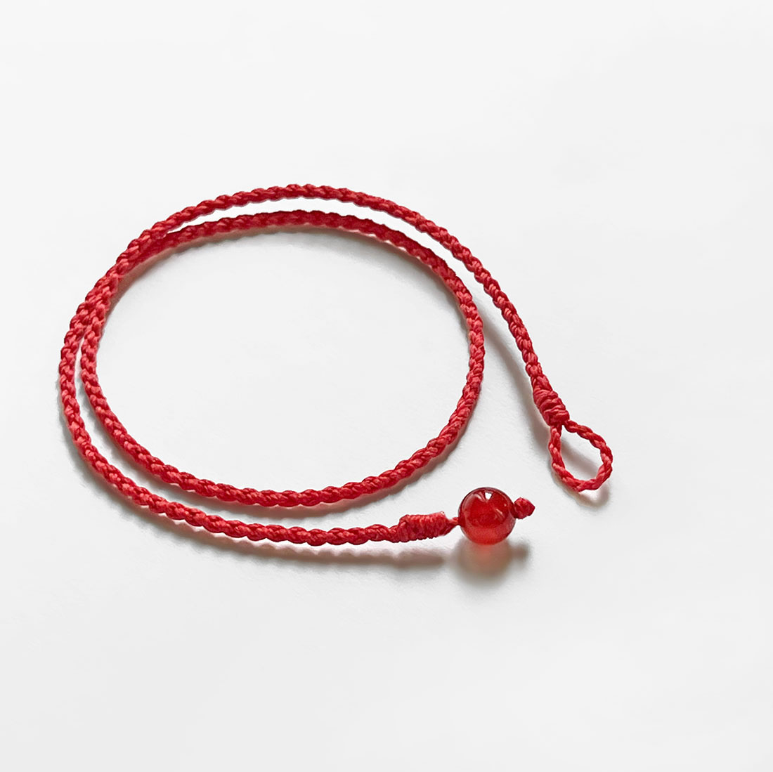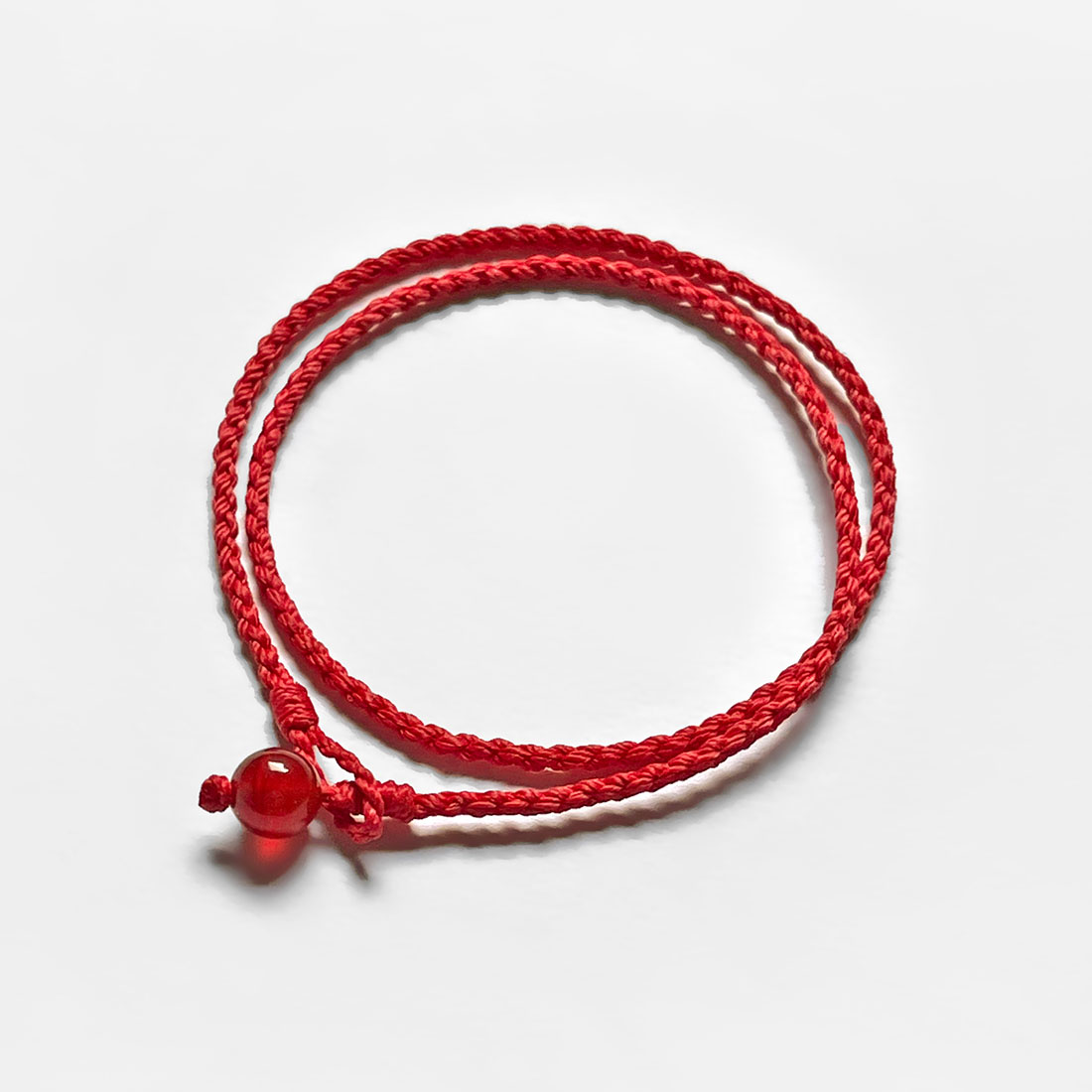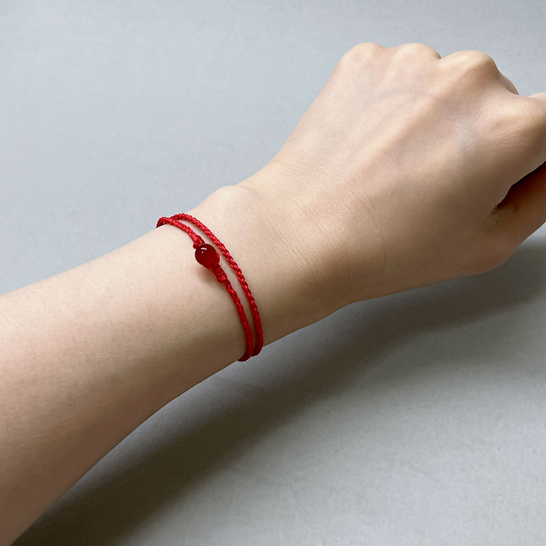 紅瑪瑙雙圈蠟線手環 (正紅)