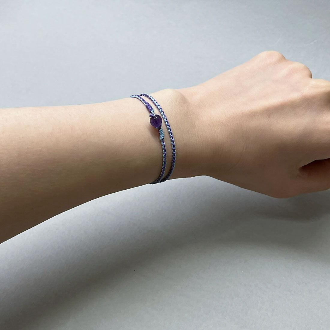 紫水晶雙圈蠟線手環 (淡藍+藍紫)