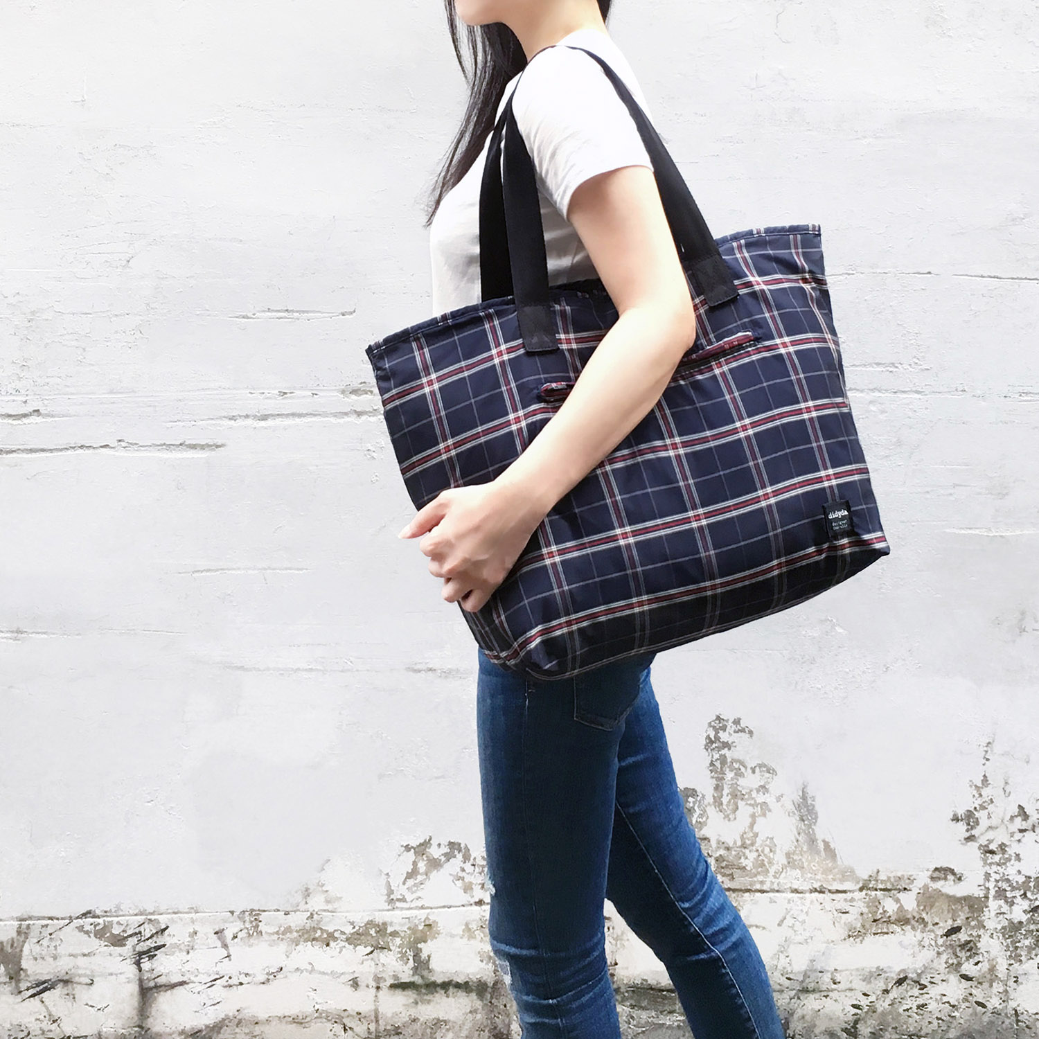 傘布收納輕便包 - 藍紅格紋